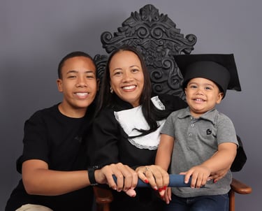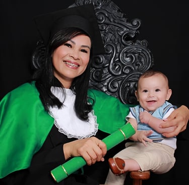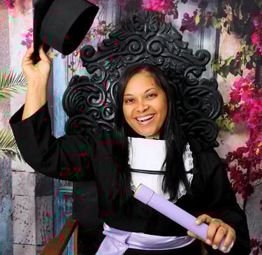 Temos beca, canudo, faixa e a cadeira de formatura, a Família pode participar.